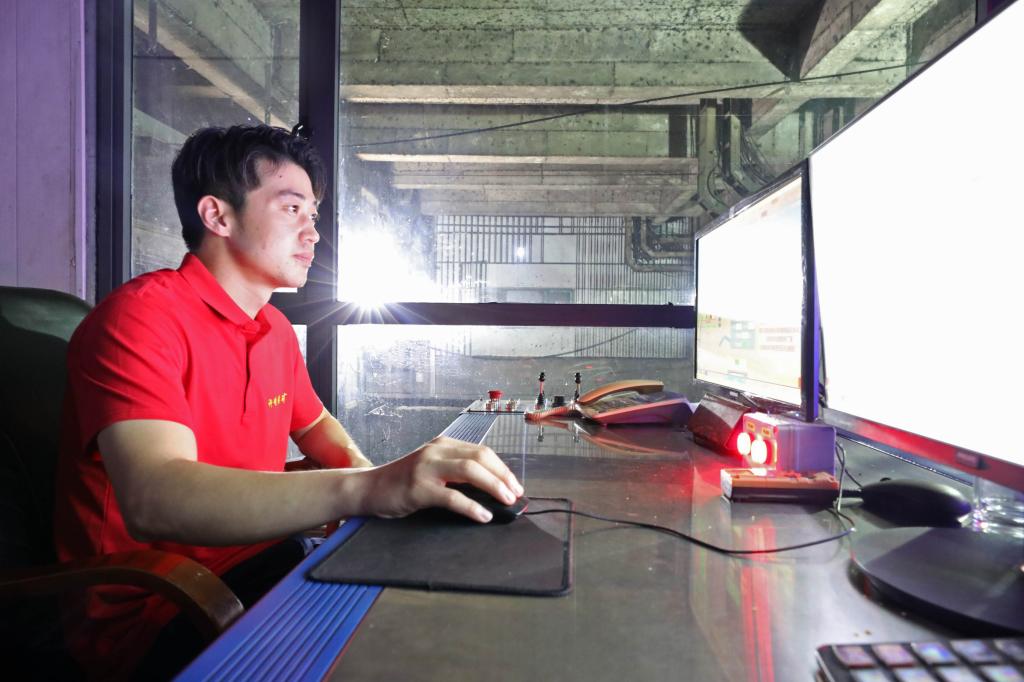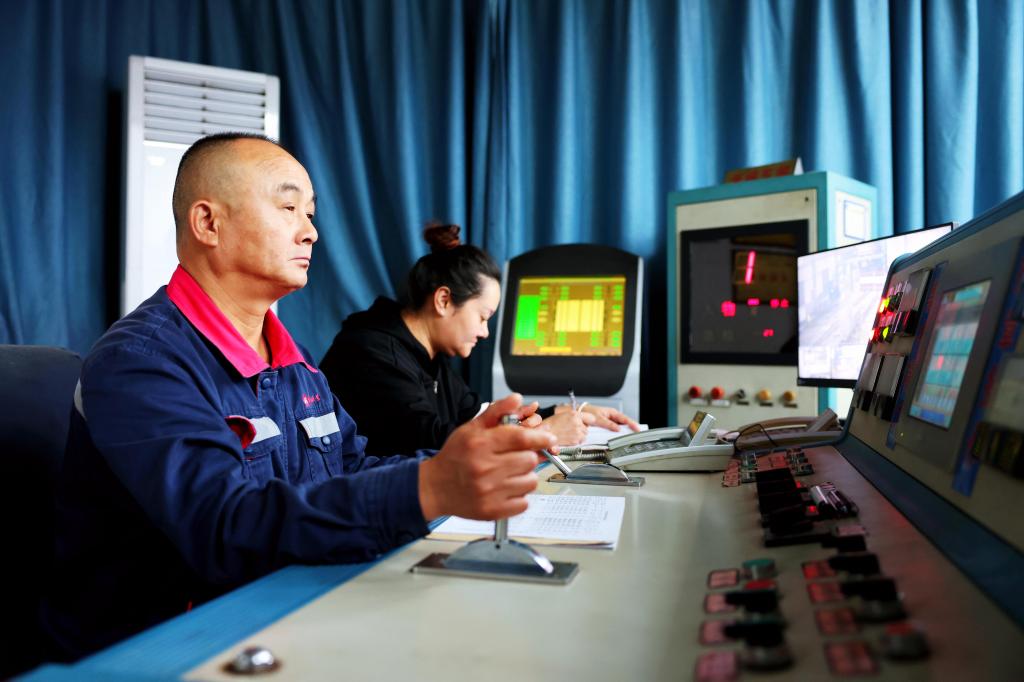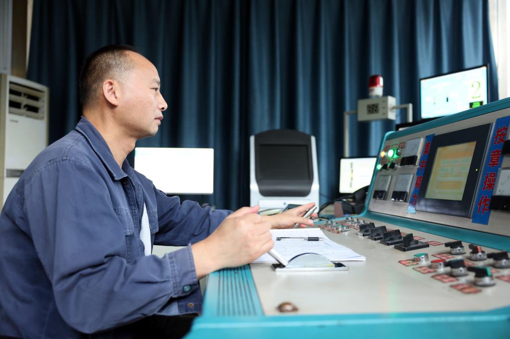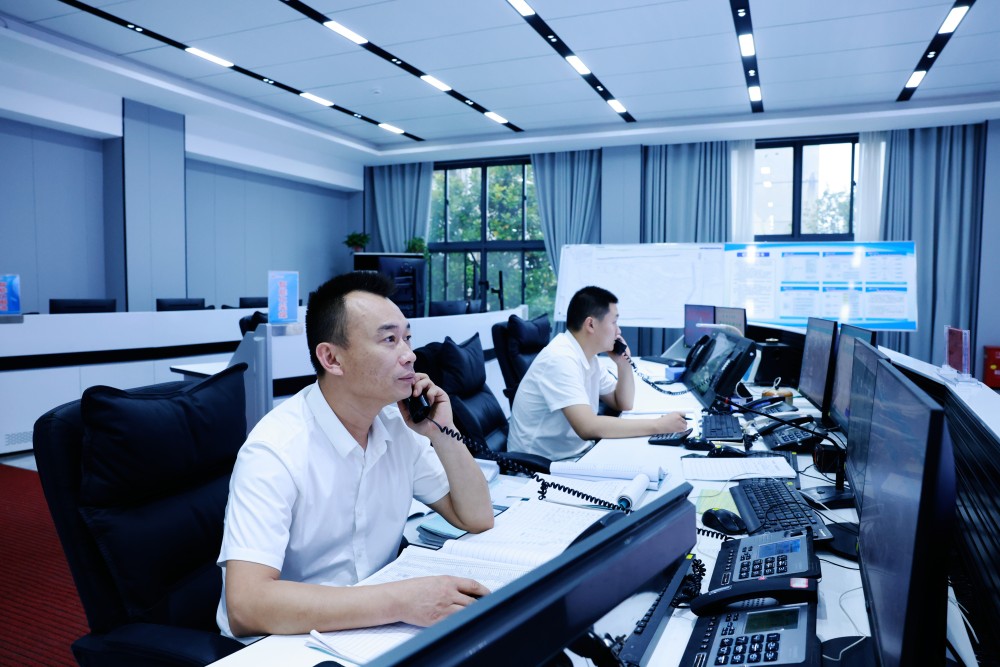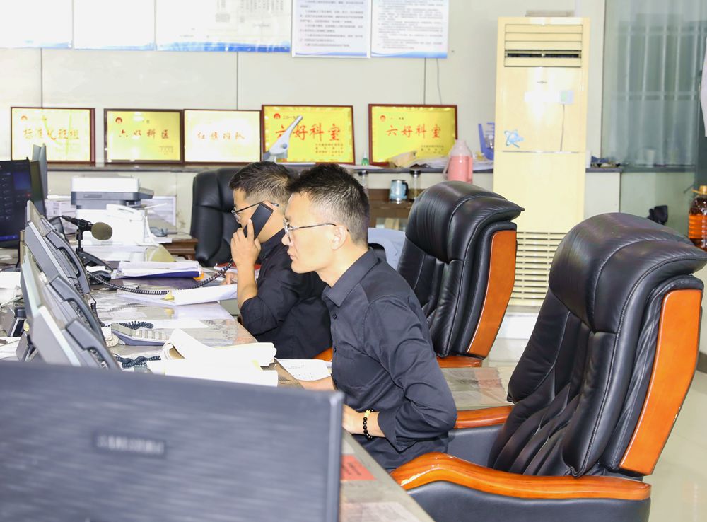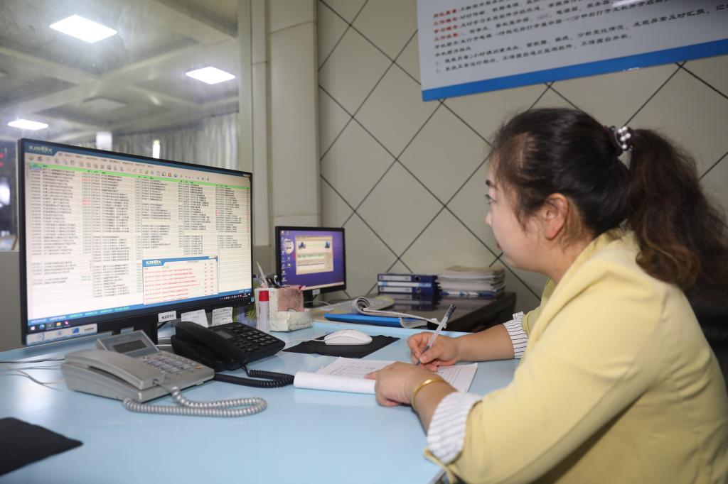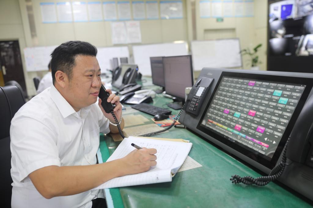 調(diào)度指揮中心調(diào)度員李強(qiáng)進(jìn)行當(dāng)班生產(chǎn)調(diào)度