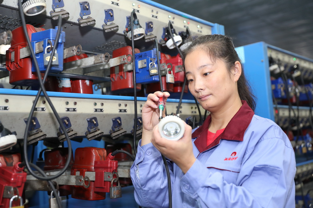 燈房女工李娜認(rèn)真維護(hù)礦燈