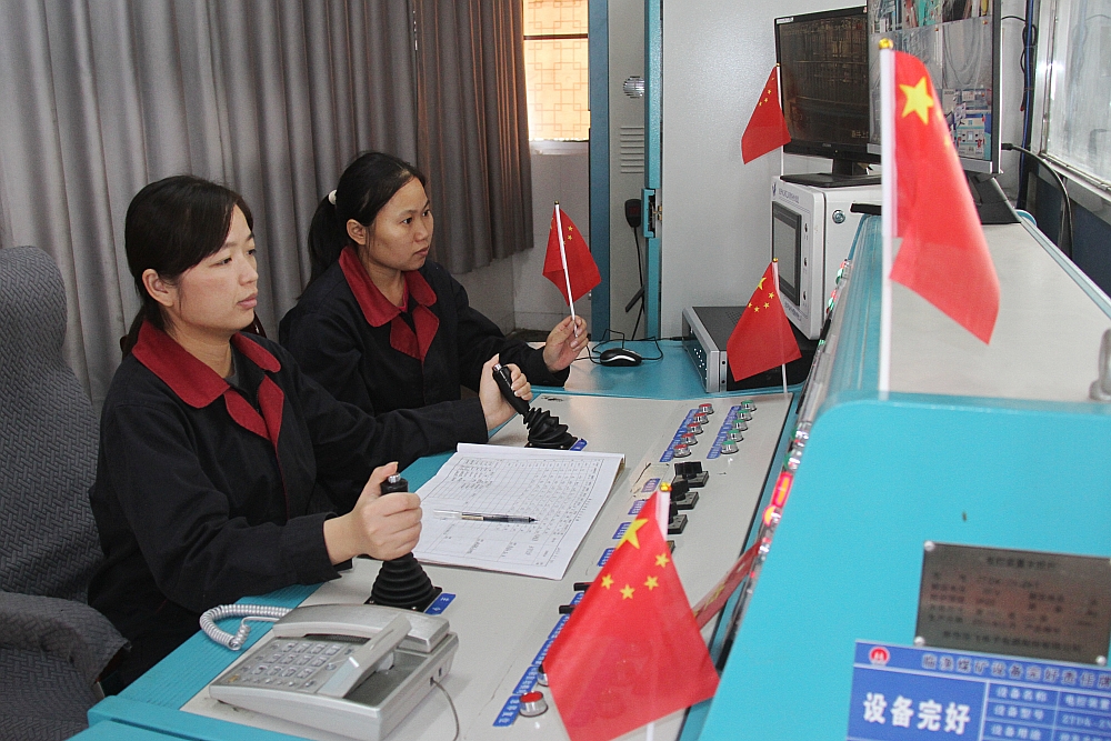 保運(yùn)區(qū)新副井女工顏夢薇、榮俊蘭執(zhí)行當(dāng)班提升工作任務(wù)