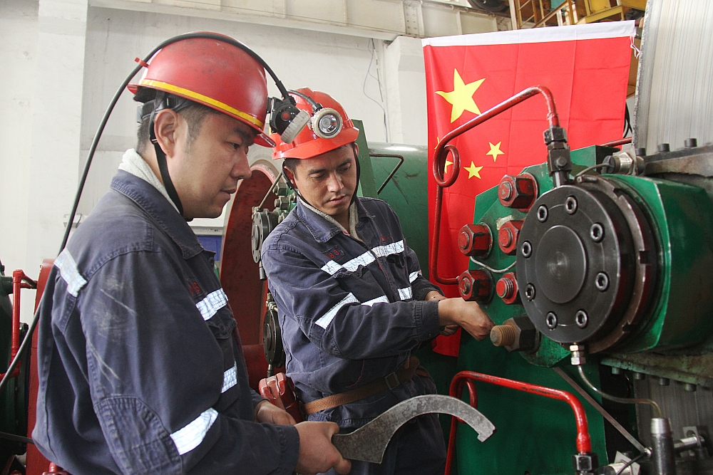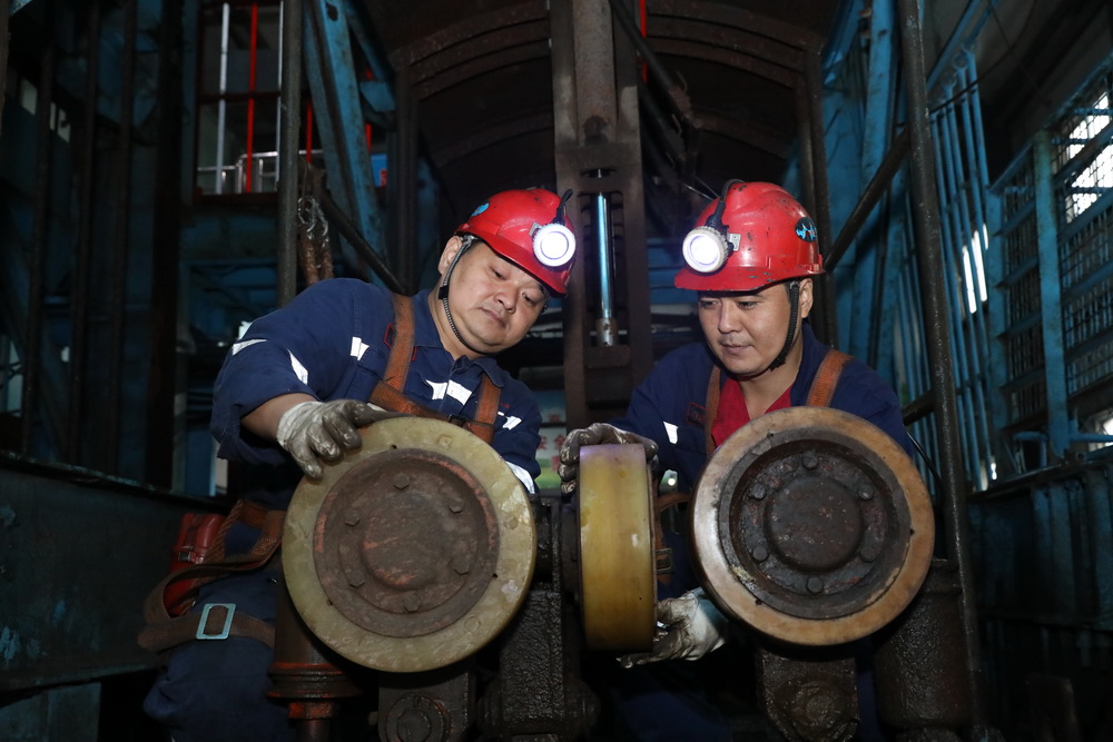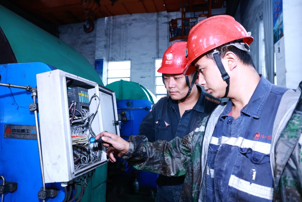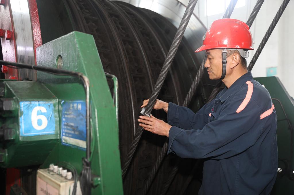 保運(yùn)區(qū)職工張亞洲、李祥智檢修副井設(shè)備確保安全運(yùn)行
