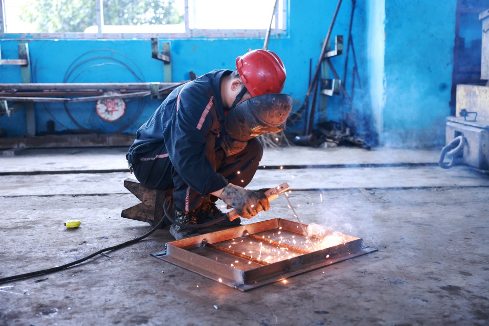 機(jī)電科職工許偉加工焊接井下支護(hù)材料