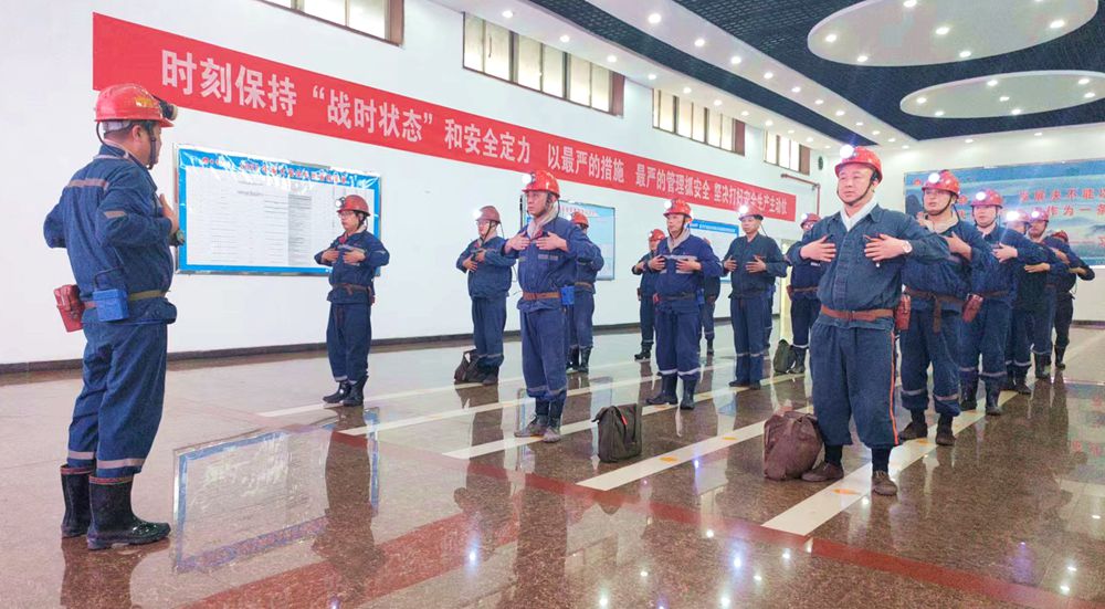 “確保當(dāng)班無‘三違’好不好,確保當(dāng)班無事故好不好,好好好!”在井口大廳,運(yùn)輸區(qū)中班下井職工正在進(jìn)行入井前安全確認(rèn),切實(shí)把好安全第一關(guān)。(審核:黃慶慶)