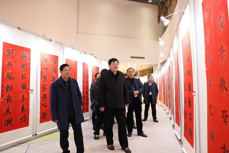 春節來臨之際,淮北礦業集團工會、淮北礦區文聯在集團大樓職工文化藝術館舉行“迎新春 保平安 送祝福”楹聯展開幕式。淮北礦業集團工會第一副主席劉杰、淮北礦業副總經理陳亞東出席開幕式并和職工一起興致勃勃地觀展。