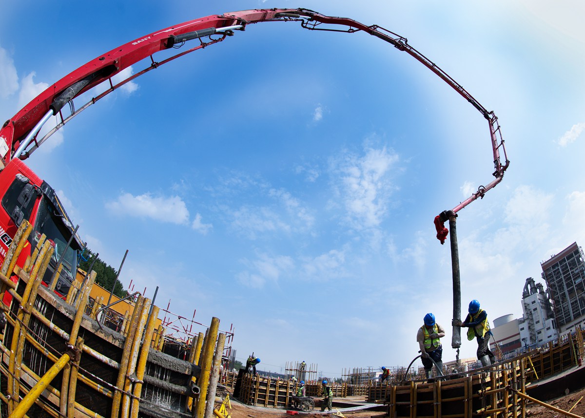 泵車正在澆注聚能發(fā)電公司機(jī)組項(xiàng)目鍋爐承臺短柱