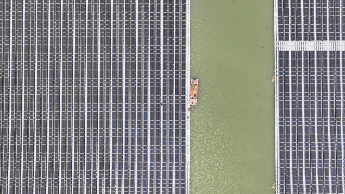 5月11日,航拍電力分公司青東塌陷區(qū)28MW水面光伏發(fā)電項(xiàng)目建設(shè)現(xiàn)場