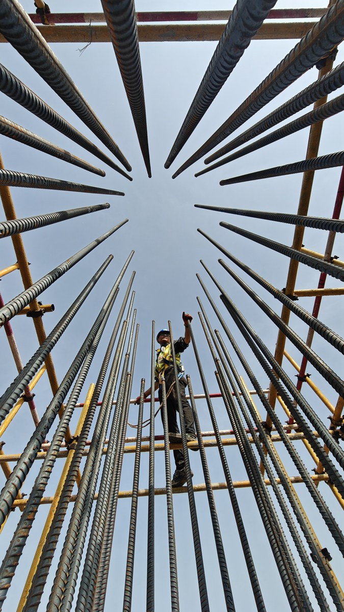 5月13日,工人在聚能發(fā)電公司機(jī)組項(xiàng)目建設(shè)現(xiàn)場綁扎鋼筋