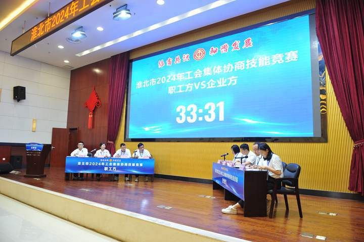 競賽以“協商共識、和諧發展”為競賽主題,旨在充分發揮集體協商制度在協調勞動關系中的重要作用,錘煉一支高素質、善溝通、會協商、有擔當的集體協商人才隊伍,切實提升淮北市集體協商質量,促進勞動關系和諧穩定。此次競賽匯集了全市各縣區、行業工會及淮北礦業集團、皖北煤電集團、中煤礦建集團、淮海實業集團10支代表隊伍,他們圍繞職工權益維護、福利待遇等問題,在模擬場景中進行集體協商,由評委組對協商呈現效果進行專業點評。各支參賽隊伍圍繞“協商共識、和諧發展”活動主題,依據理、法、情,透徹分析案例、準確運用政策、縝密邏輯推理、合理設置身份、流暢配合協作,各抒己見,據理力爭,較好展示了參賽隊伍的風采,比賽現場氣氛熱烈,緊張有序。競賽評定團體一等獎、二等獎、三等獎和個人獎項“最佳協商員”“優秀協商員”“協商能手”,同時設置優秀組織獎。