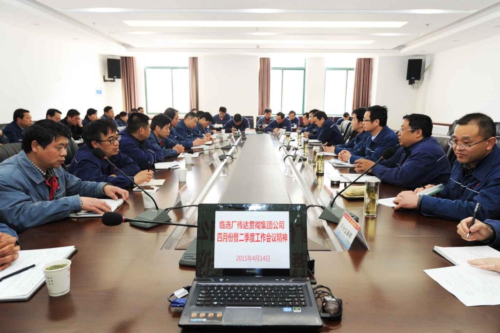 4月14日下午,臨選廠召開專題會議傳達貫徹淮北礦業四月份暨二季度工作會議精神,旨在進一步認清形勢、明確任務、安排部署當前及今后一段時間的重點工作。在家廠領導、機關各部室和基層各單位黨政負責人參加了會議。