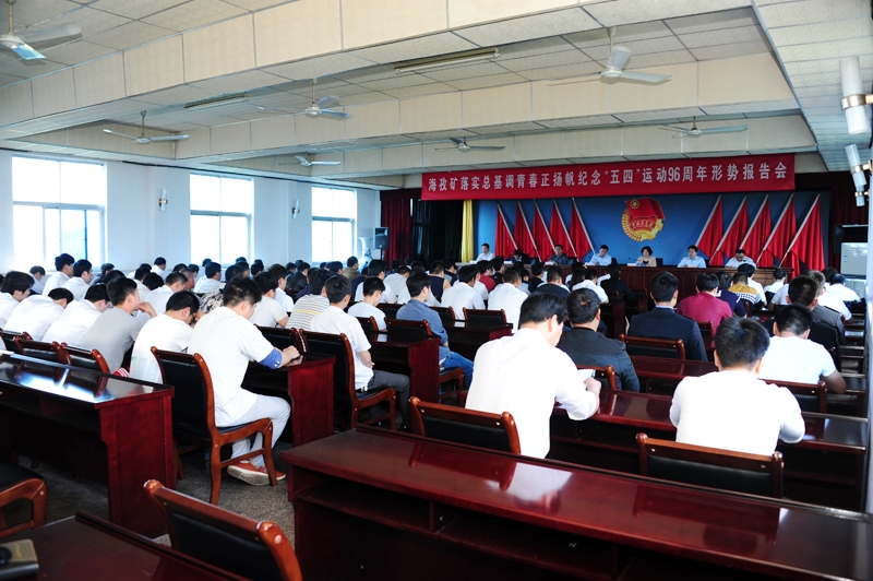 4月30日8點30分,伴隨著嘹亮的《淮北礦業之歌》聲,海孜礦紀念“五四”運動96周年形勢報告會在西四樓會議室如期召開。