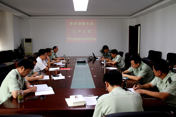 6 月19日上午,救護消防大隊黨委中心組以《嚴(yán)以修身,加強黨性修養(yǎng),堅定理想信念,把牢思想和行動的“總開關(guān)”》為主題,舉行了“三嚴(yán)三實”專題教育“嚴(yán)以修身”專題學(xué)習(xí)研討。黨委書記朱本勝主持,中心組成員、各部室負(fù)責(zé)人及政工部相關(guān)人員參加了會議。