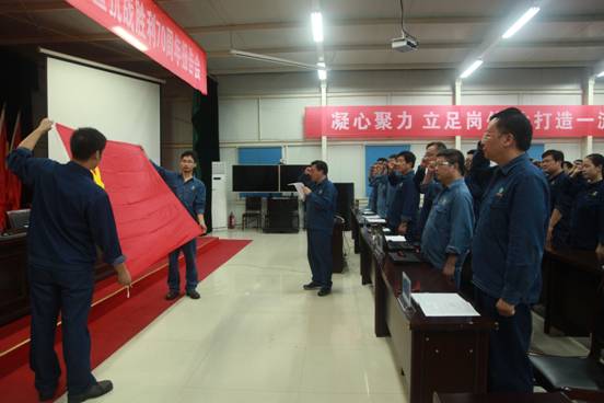 “我志愿加入中國共產(chǎn)黨,擁護黨的綱領(lǐng),遵守黨的章程,履行黨員義務,執(zhí)行黨的決定,嚴守黨的紀律,保守黨的秘密……”華塑公司第五會議室,100多位黨員干部舉起右拳,面對鮮紅的黨旗,重溫入黨時的錚錚誓言。