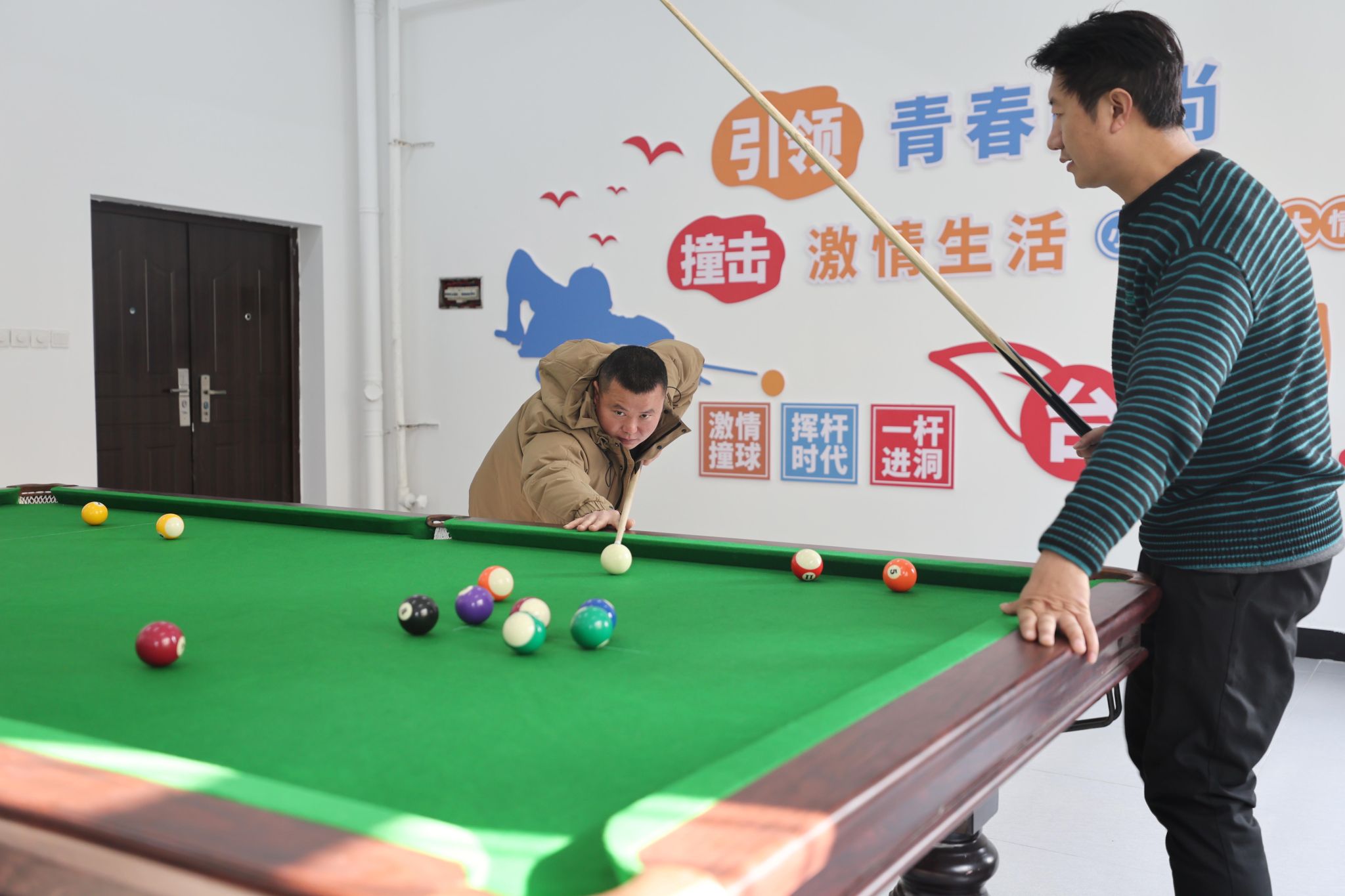 “老李,你這桿兒穩著點,別給我留機會哈!”一職工笑著給對手“施壓”。
