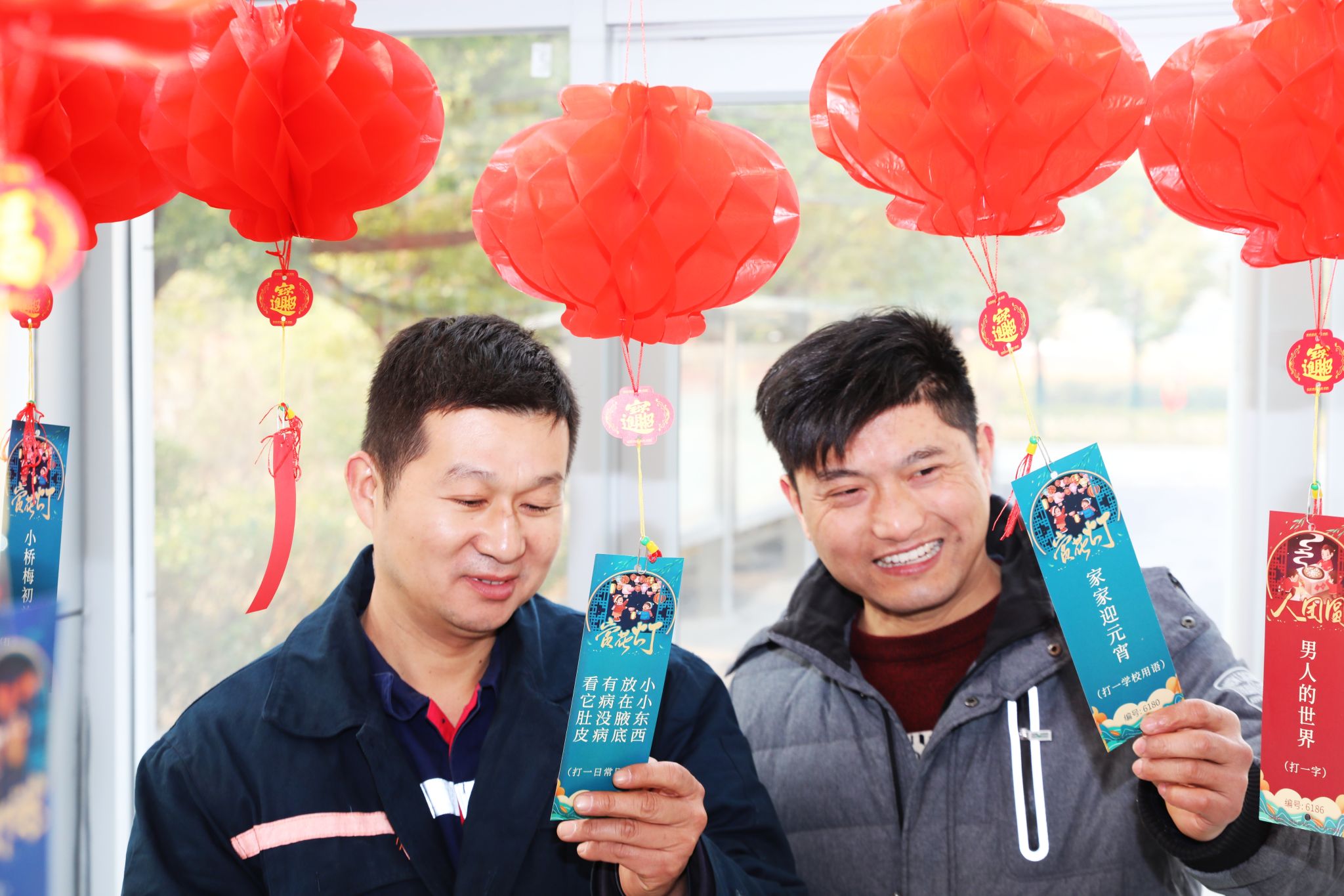 活動現(xiàn)場掛滿了紅彤彤的小燈籠,每個燈籠下懸掛著一條精心準(zhǔn)備的燈謎,內(nèi)容涵蓋安全生產(chǎn)、企業(yè)文化、生活常識、文學(xué)知識等多個方面,既有趣味性,又兼具知識性。職工們或三五成群,或獨自思考,有的眉頭緊鎖,有的恍然大悟,現(xiàn)場歡聲笑語不斷,氣氛熱烈。
