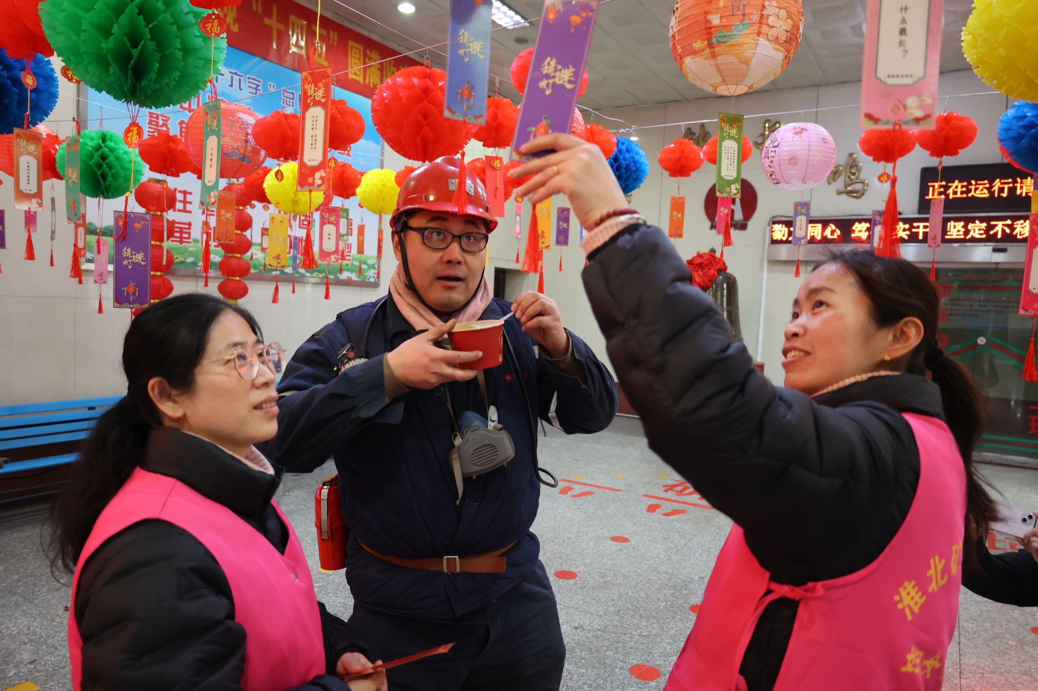 “師傅,元宵節(jié)快樂!這碗芝麻餡湯圓趁熱吃!”“猜中燈謎就能領(lǐng)洗發(fā)水啦!” 2月11日中午,朱仙莊礦職工食堂傳來一陣陣歡聲笑語,志愿者們忙碌的身影在紅燈籠下穿梭,為前來就餐的職工送上了節(jié)日的溫暖。