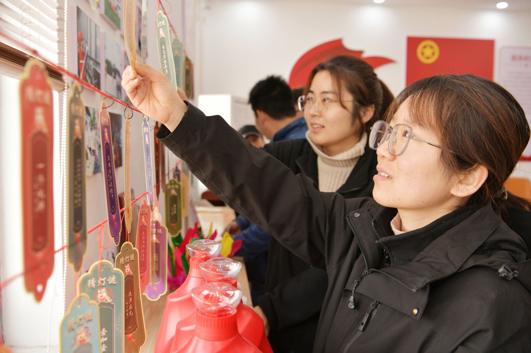 活動現(xiàn)場張燈結(jié)彩,五顏六色的燈籠下懸掛著各式各樣的燈謎,洋溢著喜慶祥和的節(jié)日氛圍。謎面既有黨的二十大、二十屆三中全會詞語燈謎、廉潔燈謎,也有成語燈謎、詩詞燈謎和字謎等,將知識性與娛樂性巧妙融合。前來參與的職工們熱情高漲,或是獨自思考,或是與同伴激烈討論,個個都沉浸在傳統(tǒng)文化的獨特魅力之中。當(dāng)成功猜出謎底時,大家的喜悅之情溢于言表,紛紛前往兌獎區(qū)前有序排隊等待兌換獎品,歡聲笑語回蕩在整個活動場地。