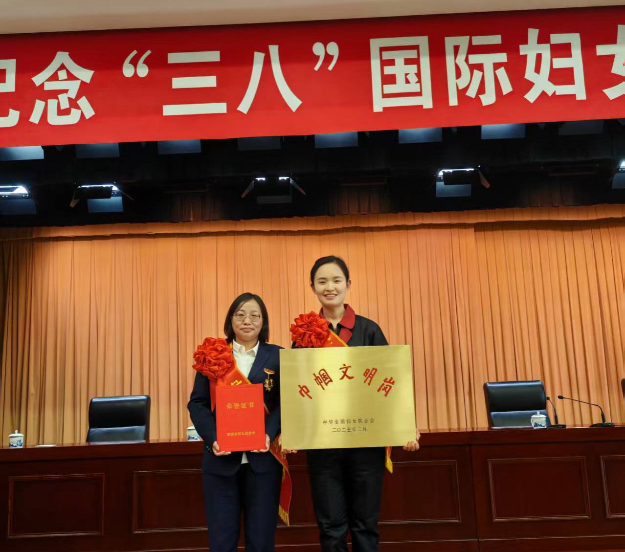 2025年全國巾幗文明崗袁店一井絞車房班、安徽省三八紅旗手標兵朱仙莊礦劉維凡在現場接受表彰。