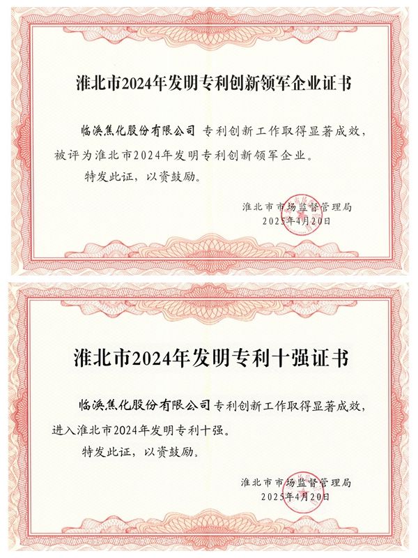 日前,從淮北市市場監(jiān)督管理局傳來喜訊,臨渙焦化公司獲評(píng)淮北市“2024年發(fā)明專利創(chuàng)新領(lǐng)軍企業(yè)”和淮北市“2024年發(fā)明專利十強(qiáng)”兩項(xiàng)榮譽(yù)稱號(hào)。