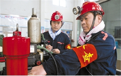 為實現零工傷、零事故、零違章的“三零”目標,淮北礦業集團袁店二礦持續開展安全生產監督檢查。圖為該礦督查員在副井檢查設備運行狀況。孫健 攝