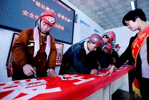 5月13日是安徽省安全生產警示教育日。當日,淮北礦業各廠礦開展了以銘記2003年“5.13”特大瓦斯爆炸事故教訓、珍愛生命為主題內容的安全生產警示教育活動,活動內容包括安全宣誓、安全簽名、觀看事故案例專題片等。圖為楊莊礦協安員正組織中班下井職工進行安全承諾簽名。