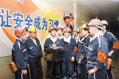 安徽淮北礦業(yè)集團朱仙莊礦不斷充實群安網(wǎng)員隊伍,定期組織群安網(wǎng)員上崗互查,保障安全生產(chǎn)。圖為群安網(wǎng)員準備下井排查隱患。王道玉 攝