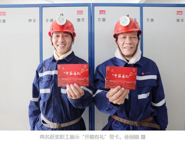 “恭喜您!在蘆嶺礦‘開箱有禮’活動(dòng)中,您的更衣箱干凈整潔,擺放有序,為您點(diǎn)贊!請(qǐng)您繼續(xù)保持!”1月1日,新年第一天,淮北礦業(yè)集團(tuán)蘆嶺礦安監(jiān)處職工周利華打開職工浴池更衣箱,驚喜地發(fā)現(xiàn)里面多了一張“開箱有禮”賀卡和一份獎(jiǎng)品。