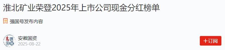 近日,中國上市公司協會發布2025年上市公司現金分紅榜單,淮北礦業成功入選,名列股息率榜單第31位,安徽省入選股息率榜單企業第2位,彰顯出市場對淮北礦業在股東回報方面所做努力的充分認可。