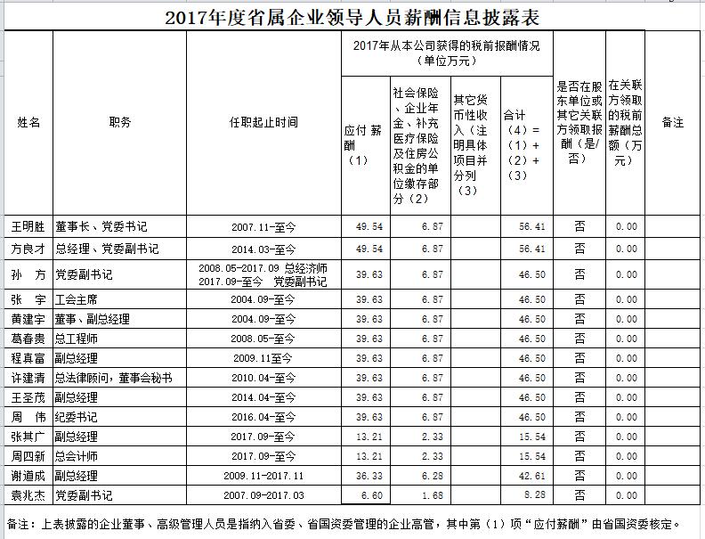 淮北礦業集團2017年度省屬企業領導人員薪酬信息披露表
